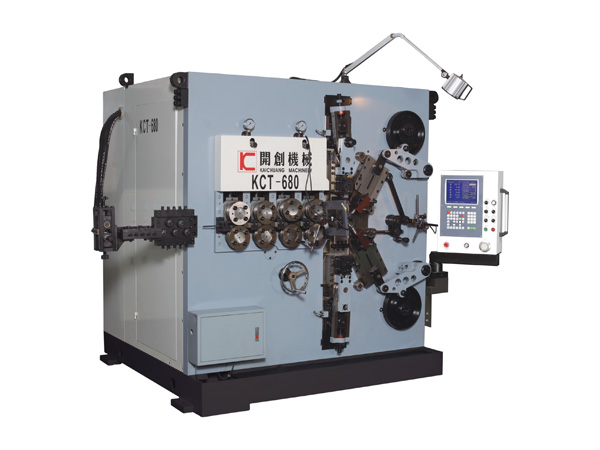 Our company's KCT-660 six axis CNC High-speed spring coiling machine control system used in Taiwan, reference Japan Yaskawa servo motor and high precision bearings, the standard models for 6 axes, each axis can operate independently or with synchronous operation, forming speed, stable performance and high precision the characteristics of. The model ( 680-type computer compression spring machine ) has realized the man-machine dialogue truly, has one minute spring molding ability, and in guaranteed the speed, the precision and the performance condition, strives for the noise to the minimum, pursues the simpler type operation. In addition, the machine can realize the functions of straight cutting, counter cutting and swing cutting, and has the function of high-definition photography inspection.