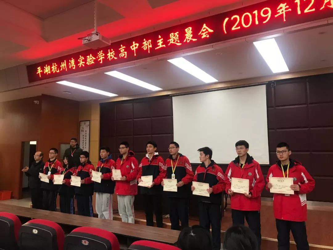 小報告廳內(nèi),“高一(2)班是一個團結(jié)拼搏,勤奮樂學(xué),愛好和平,自強不息的班級。”隨著主持人陳昕奕、胡怡馨同學(xué)的介紹,一周一次的平湖杭州灣實驗學(xué)校高中部晨會開始了。在三十余分的晨會上,有高一(2)班的班級介紹,有劉廣興副校長對授獎班級和寢室的名單宣布,有張朝主任對成績優(yōu)秀學(xué)生的頒獎儀式,有王域主任組織的十大學(xué)星、優(yōu)秀班干部、優(yōu)秀課代表、自律模范、道德模范、優(yōu)秀學(xué)生會成員、優(yōu)秀宿舍成員的民主投票。大會在緊張而有秩序高效地進行著。