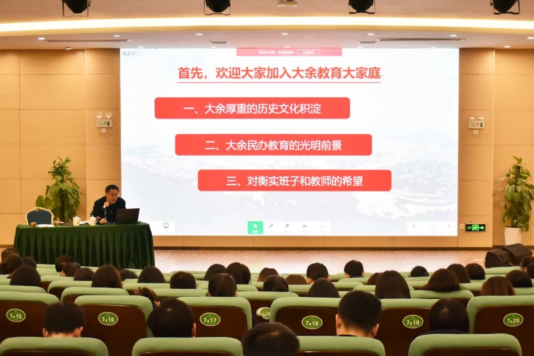 冬日微寒,層林盡染。12月28日晚上,大余衡水實(shí)驗(yàn)學(xué)校報(bào)告廳內(nèi)不時(shí)爆發(fā)出熱烈的掌聲,一場由大余縣教科體局黨委書記、局長曾凡偉主講,主題為《立足教育熱土,厚植家國情懷》的講座正在如火如荼地進(jìn)行。講座由王躍平校長主持,大余衡水實(shí)驗(yàn)學(xué)校全體教師到場聆聽。